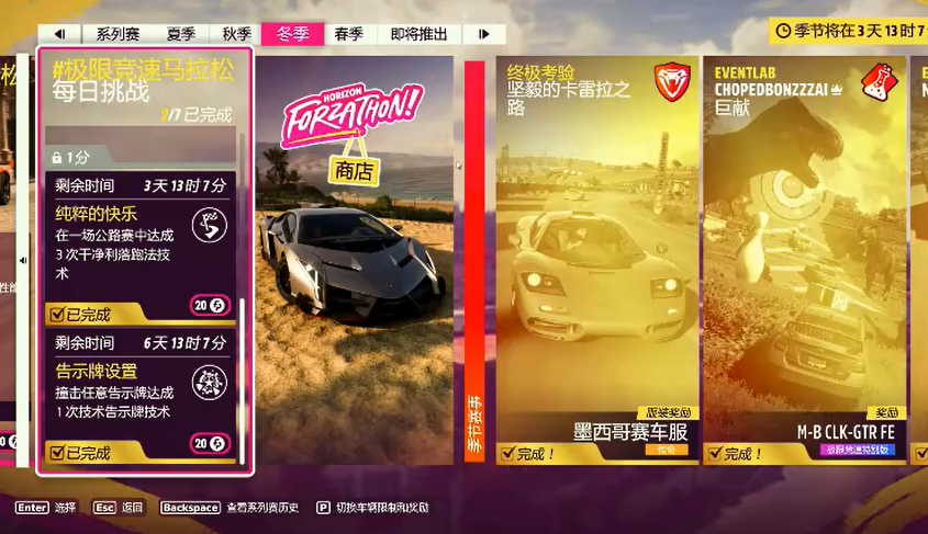 地平线5告示牌在哪?这是冬季赛的每日挑战任务之一,需要玩家展示一次告示牌技术,下面小编为大家带来地平线5告示牌技术攻略,感兴趣的小伙伴一起了解一下吧。